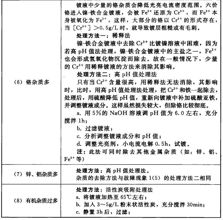电镀镍铁合金故障及其处理(1)