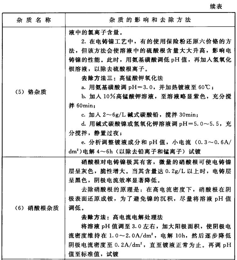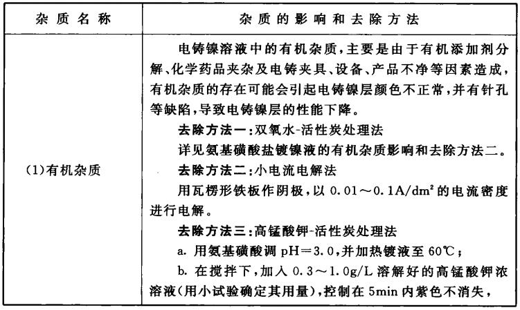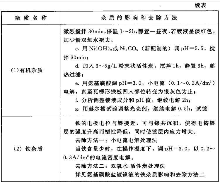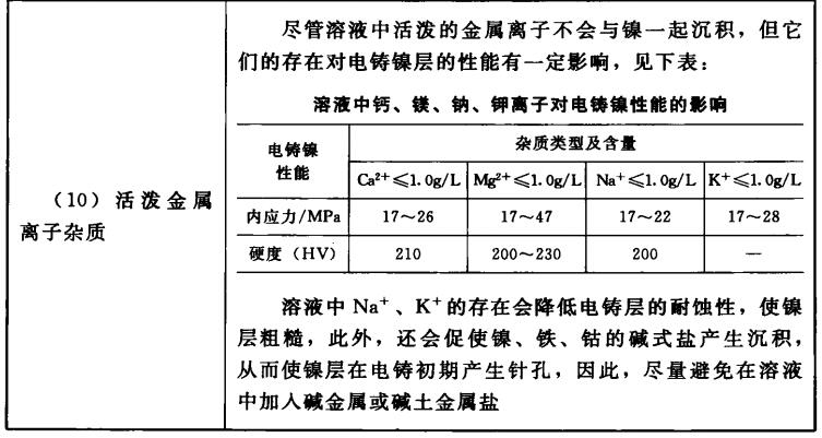 电铸镍镀液杂质