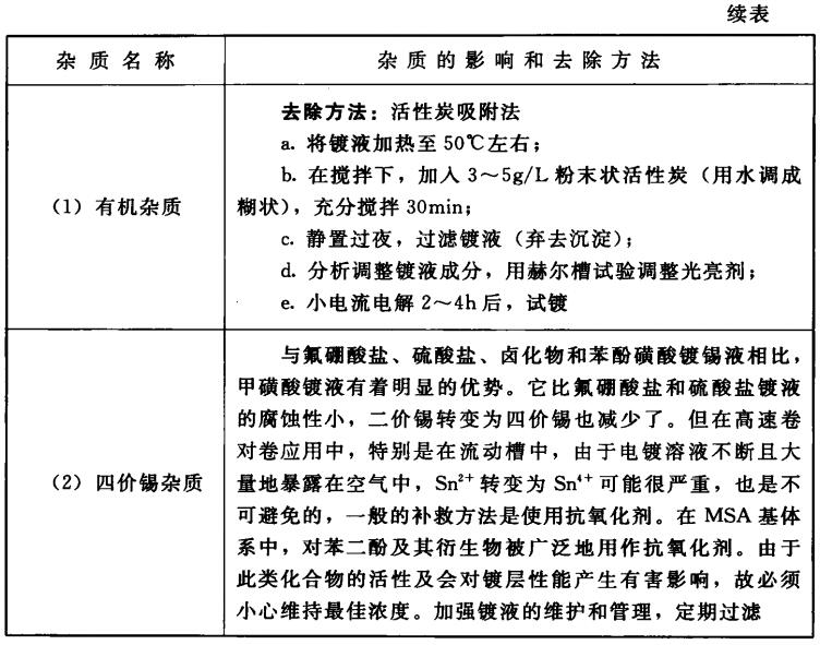 甲基磺酸盐镀锡液杂质