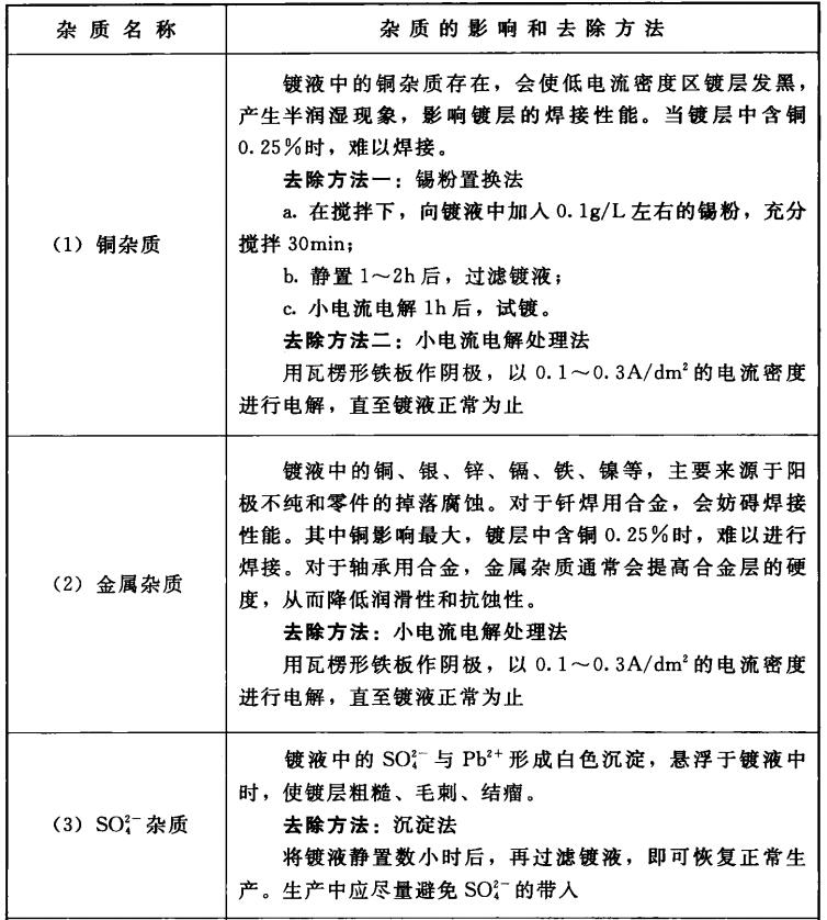 氟硼酸盐电镀铅-锡合金液杂质