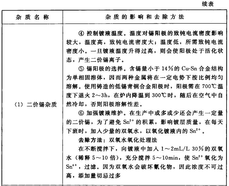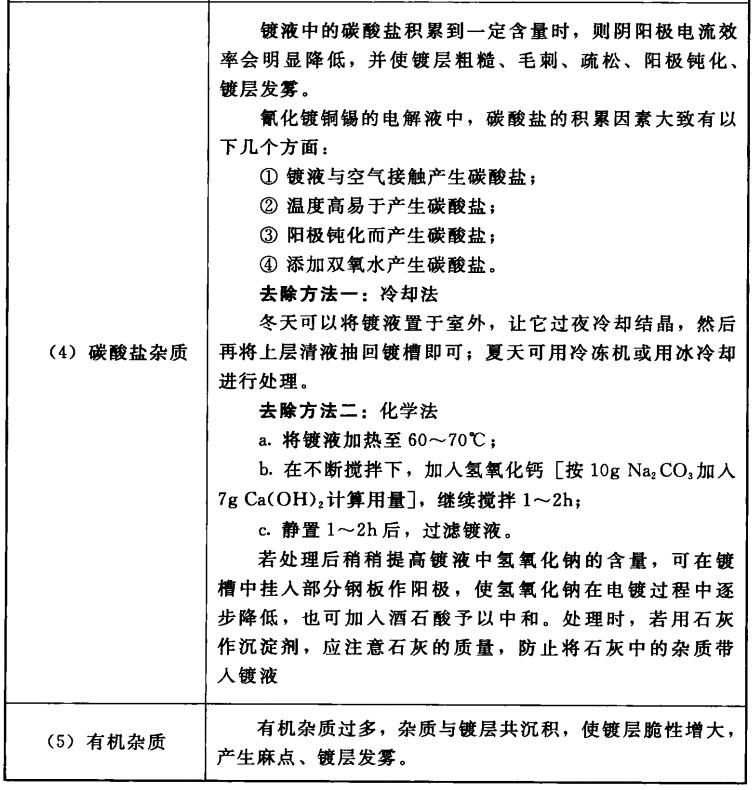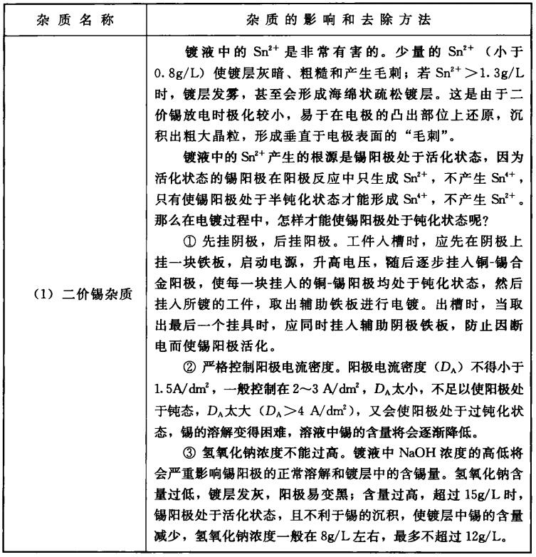​氰化镀锡青铜(Cu-Sn合金)镀液杂质