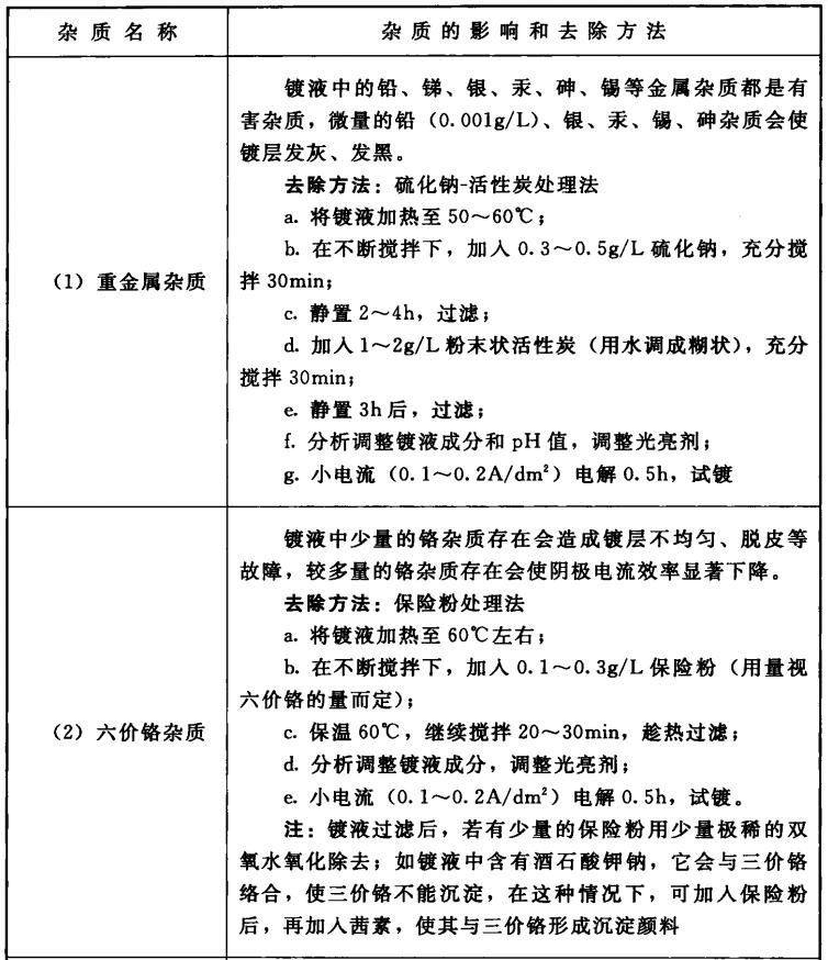 氰化镀白铜(Zn-Cu合金)镀液杂质