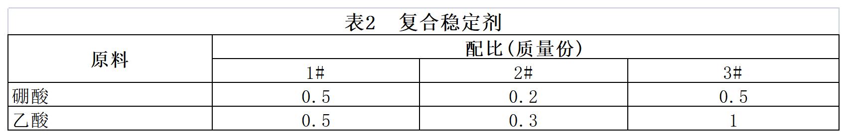 所述复合稳定剂为乙酸、柠檬酸或单宁酸中一种与硼酸或硼酸钠的混合物。