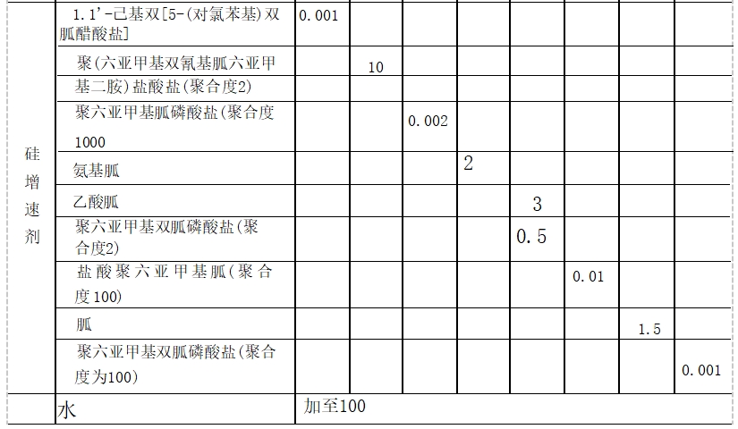 所述硅增速剂为含有胍基的化合物为单胍、双胍、聚胍类化合物及其酸加成盐。