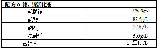 本液对基体腐蚀小,能使表面处于最佳活化状态,有利于镀层与基体的 结合。