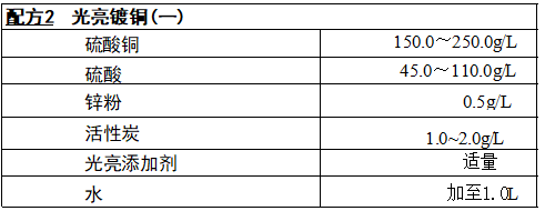 将硫酸铜用水加热溶解,冷却后在搅拌下缓缓加入硫酸及余量的水。 再加锌粉和活性炭处理,搅拌、过滤后加添加剂搅匀即可使用。