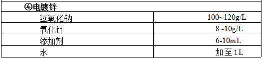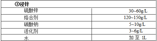 工艺流程:试样 → 打磨 → 去氢 → 除油 → 水洗 → 酸洗 → 水洗 → 活化 → 水洗 → 浸锌 → 水洗 → 电镀锌 → 水洗 →钝化 → 水洗 → 干燥。