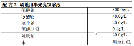 半光亮镍溶液为绿色,使用本溶液可得到结晶细致、孔隙率少、硬度高 的镀层。具有耐腐蚀和耐磨的特点,是比较理想的工作镀层。