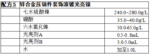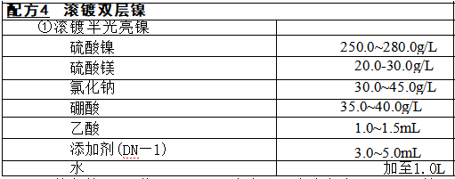 工艺流程:多效能水剂清洗液除油→水洗→酸洗→水洗→ 10%的硫 酸弱蚀 →镀半光亮镍 → 水洗 → 5%的硫酸弱蚀 →滚镀全光亮镍 → 水 洗 → 浸热蒸馏水 → 烘干 → 检验