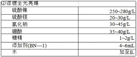 工艺条件:pH 值3.8~4.5,温度室温,电流密度10A/dm²,时间3h。
