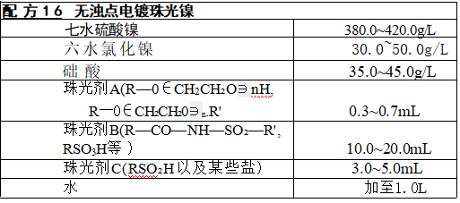 无浊点电镀珠光镍工艺操作简单,工艺范围宽,镀液处理周期长,易维 护。镀层外观细腻,色泽似珠光般柔和,镀层柔软性好,与基体结合力好,与 其他皱种配伍性强。广泛适用于室内装饰件、小五金件、家用电器装饰件。 文教用品、汽车、摩托车、自行车的零件等,作为防护及装饰性镀层。
