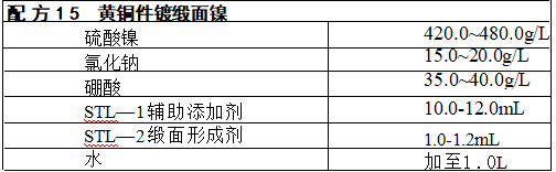 工艺条件:pH 值4 . 4~4 . 6,电流密度3 . 0~4 . 0A/dm², 温度50~55℃, 搅拌方式为槽液循环,阴阳极面积比为1:1,电镀时间3~5min。