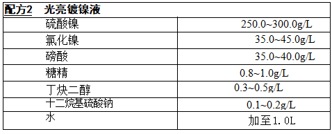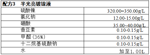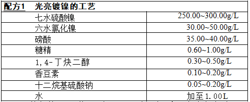 工艺条件:pH 值3 . 5~4,温度50~55℃,电流密度3~4A/ dm², 需要阴 极移动。由于香豆素易于分解,故国内很多的光亮镍配方不用香豆素。至