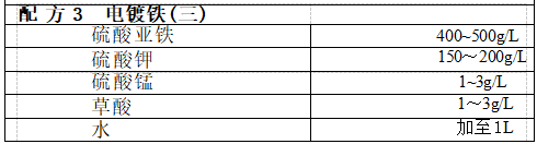 工艺条件:pH 值2 .0~7 .5,温度70~80℃,电流密度3~7A/dm²。 分别将硫酸钾、硫酸锰、草酸溶于水后加入硫酸亚铁溶液中。