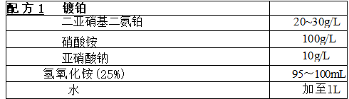 将铂盐溶于氢氧化铵中,其他组分用水溶解后加入,调节pH 值之后, 煮沸通电处理即可使用。