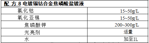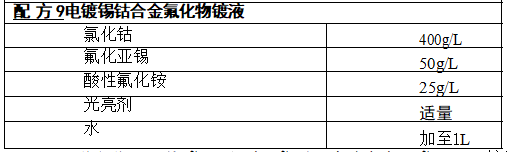 工艺条件:pH 值8.5~10,温度50~60℃,电流密度0.3~1A/dm²,镀层含 钴 2 0 % ~ 3 0 % 。