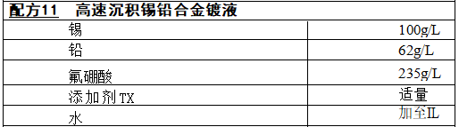 工艺条件:pH 值 5 左 右 , 电 流 密 度 0 . 5 ~ 2 . 5A/dm², 阳 极 为 锡 : 铅 =8:2-9:1,温度10- 35℃。