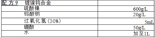 将各组分别溶于水后再混合搅拌均匀即成。 镀得的镍钨合金镀层耐热性高,抗蚀性好。