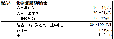 采用络合方法,可使普通碳钢在pH 值为13的镀液中获得化学镀镍铬 磷合金镀层;溶液pH 值越高,开始化学沉积所需温度会越低;镍铬磷合金 沉积过程得以进行依赖于析出原子镍的催化活性。由安徽建筑工业学院研究开发。