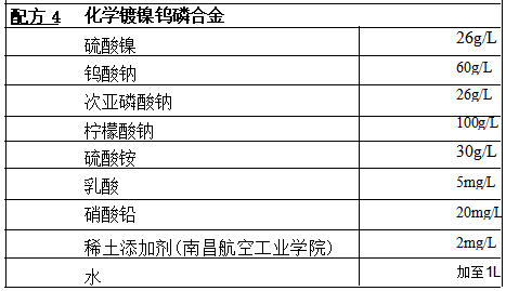 镀液最佳配比:钨的质量分数保持在2%~4%,钨酸钠浓度30g/L, 磷 的质量分数为3%~6%,柠檬酸钠浓度35g/L, 添加剂A 为 1g/L。