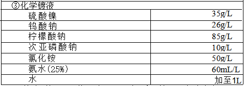 整个工艺流程为:化学除油→冷水冲洗 → 酸蚀 → 冷水冲洗 → 化学镀 → 冷水冲洗 → 镀后处理。