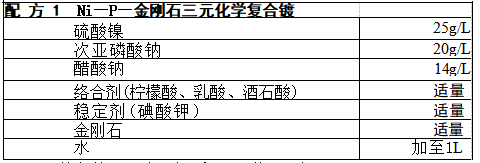 该工艺适用于低碳钢板。其经磨制后除油、酸洗即可入槽施镀。施镀 过程中采用磁力搅拌器搅拌,以保持金刚石的悬浮,采用红外灯加热