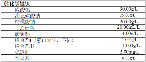 燕山大学开发的本工艺,化学粗化时采用含添加剂的强碱性高锰酸钾型工艺代替高铬酸型工艺,避开了六价铬可能造成的环境污染问题。且低 温碱性化学镀镍液稳定,使用寿命长,镀层光亮,耐蚀性良好。