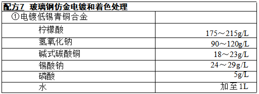 虽然低锡青铜仿金镀层色彩鲜艳,可作表面装饰,但镀层容易氧化变 色,进行化学着色处理,可使镀层化学稳定且表面变得古色古香,丰富了玻 璃钢的表面装饰效果。但在化学着色前,镀层须在98%硫酸50mL/L、十二 烷基硫酸钠0. 1g/L 的溶液中进行活化处理,效果才好。