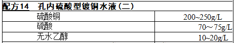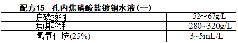 阳极含磷0.01%~0.03%的铜板,电流密度1~3A/dm², 溶液温度10~ 25℃,沉积速度15μm/h。