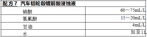 酸浸蚀目的是除去经碱蚀后表面形成的黑膜及硅、镁等元素,以保证表 面呈均匀的富铝状态,同时起抛光作用。酸浸蚀液中必须加氢氟酸,以消除 硅化物的挂灰。
