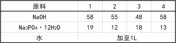 本品各组分配比范围为(g):碱洗液包括:NaOH 40~60、Na3PO4 · 12H2O 10~20、水加至1L。