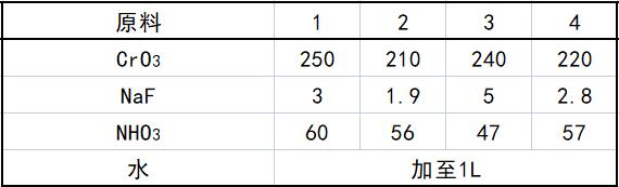 酸洗液包括:CrO3 200~300、NaF 1~10、NHO3 50~60、水加 至1L。