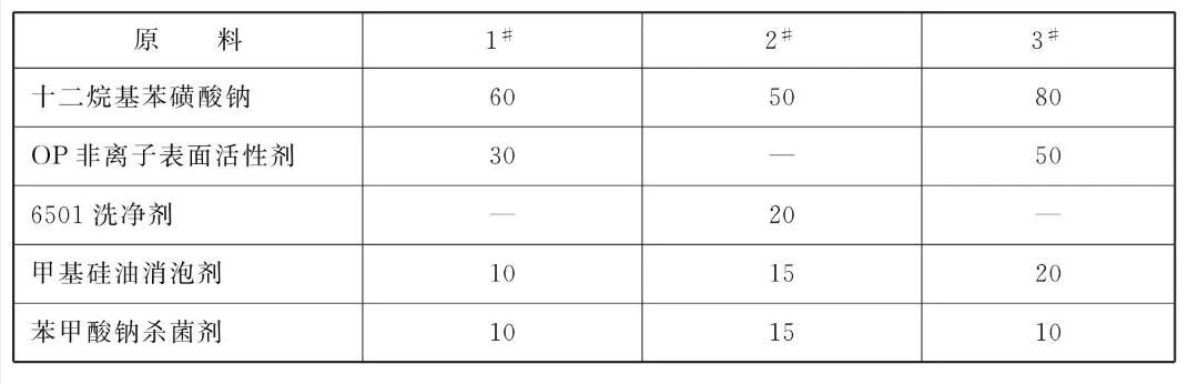 另外,本品中还可根据需要加入0.5~2杀菌剂,以延长使用寿命;加入0.5~2消泡剂,以提高在高压喷射清洗中的消泡能力。