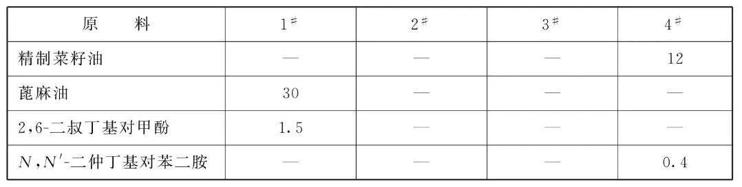 [原料配伍]本品各组分质量份配比范围为:高闪点的石油馏分油393~ 400、 硼脂甘油酯8~40、硫化脂肪2~32、植物油12~ 60、抗氧化剂0.4~4。