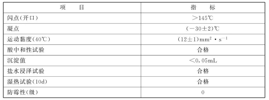 表1 气相防锈油的技术指标