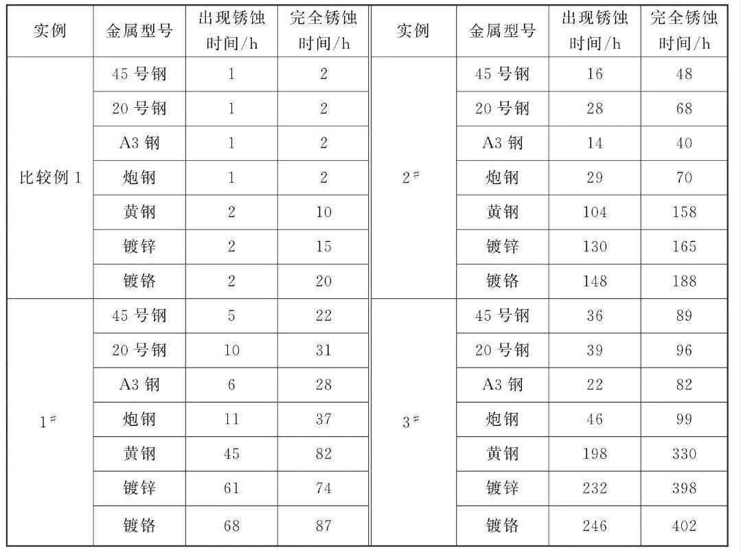(3)本气相防锈油对炮钢、A3钢、45#钢、20#钢、黄铜、镀锌、镀铬等多种金属具有防锈作用,是一种多功能气相防锈油。