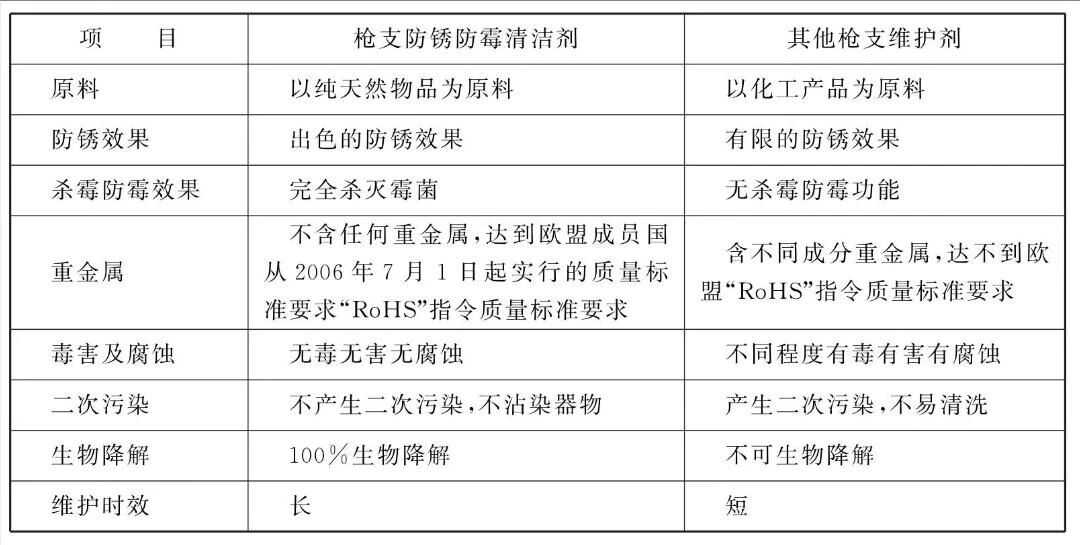 本品作为枪支防锈防霉清洁剂时与普通擦枪油的使用效果比较如下: