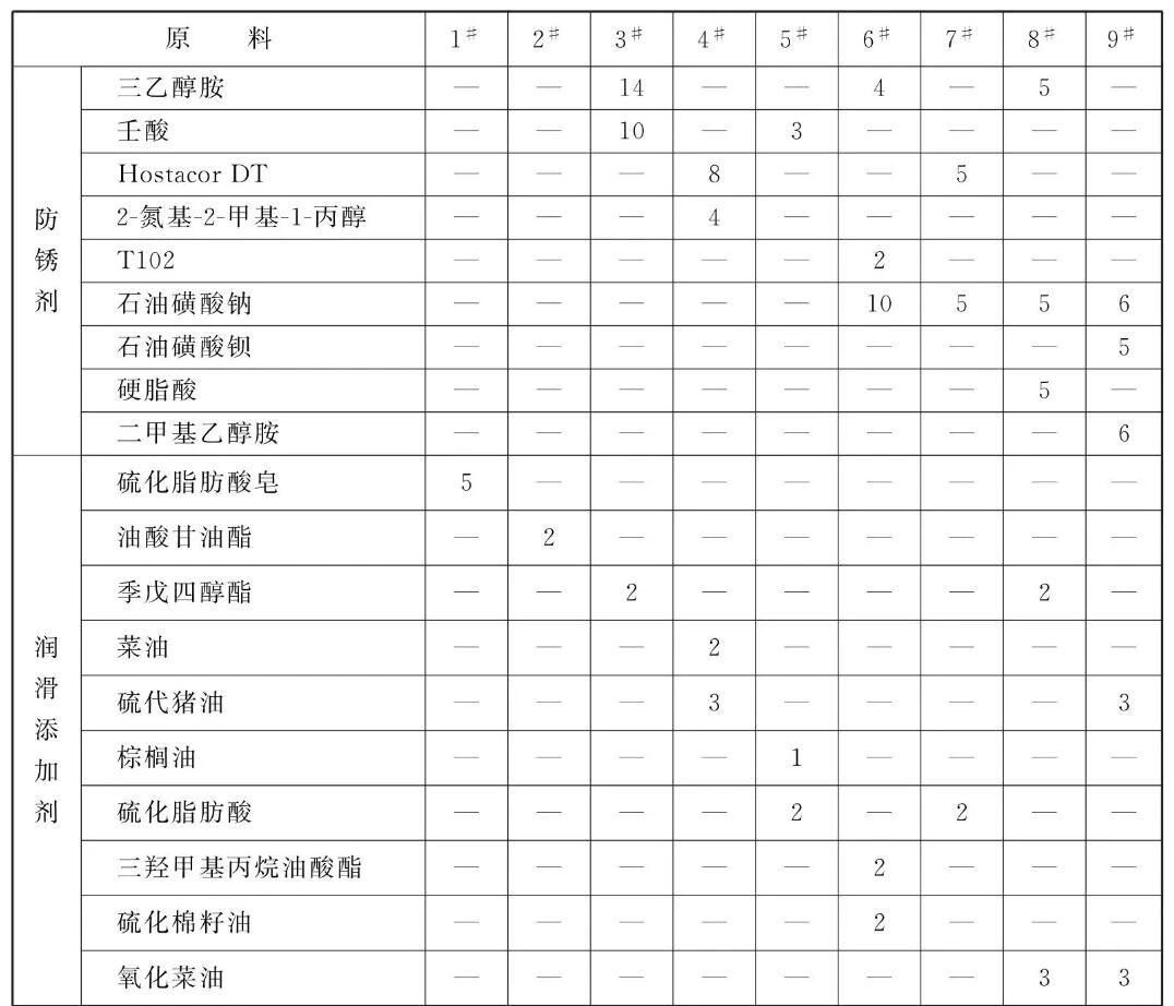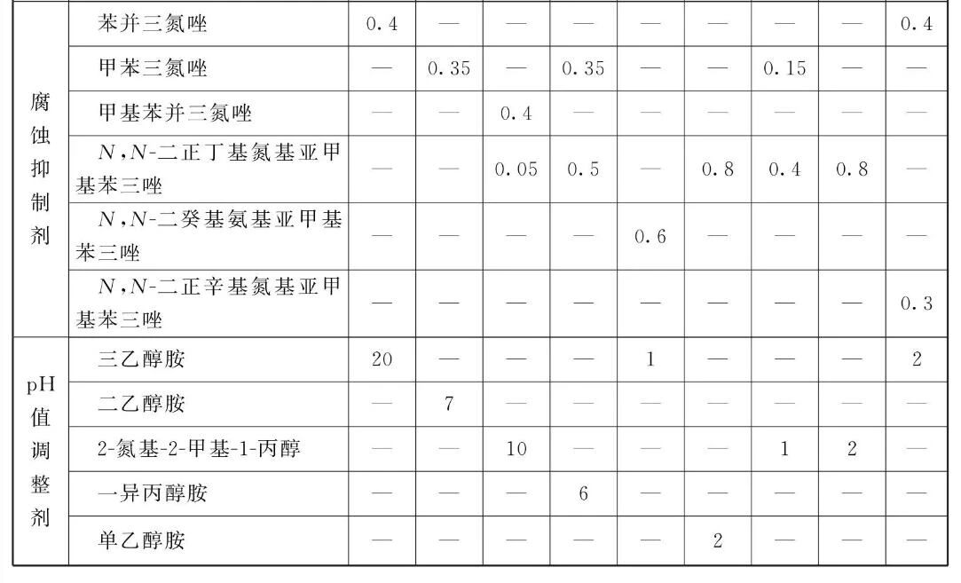 所述防锈剂优选自羧酸、硼酸、醇胺或磺酸盐中的至少-种,其中羧酸优选C2~C2的烷基的一元酸或二元羧酸中的至少一种;醇胺优选二甲基乙醇胺、二乙醇胺、三乙醇胺、一异丙醇醇、二异丙醇胺或2-氨基-2-甲基-1-丙醇中的至少一种;磺酸盐优选磺酸钠、磺酸钙或磺酸镁中的至少一种。
