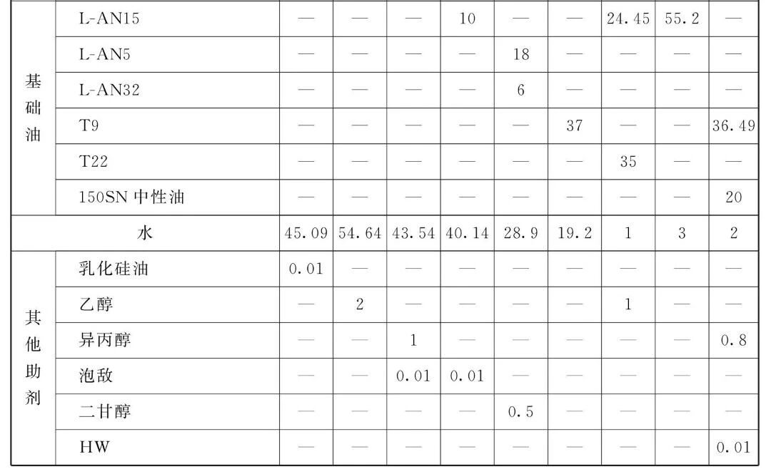 易镀,专业的表面处理交流平台 分别取抑钴剂、防锈剂、润滑添加剂、腐蚀抑制剂、pH值调整剂和水,在50~ 70°C温度下加热溶解,搅拌均匀,然后加入乳化剂、基础油和其他助剂,继续搅拌至均匀,可得到淡黄色透明液体,将该液体按5%的比例加水稀释后得到稀释液。 易镀,专业的表面处理交流平台 本品各组分质量份配比范围为:抑钴添加剂0.1 ~8、防锈剂0.5~40、润滑添加剂0.1~20、腐蚀抑制剂0.05~5、pH值调整剂0.2~20、乳化剂0.5~40、余量为水、基础油和其他助剂。 所述防锈剂优选自羧酸、硼酸、醇胺或磺酸盐中的至少-种,其中羧酸优选C2~C2的烷基的一元酸或二元羧酸中的至少一种;醇胺优选二甲基乙醇胺、二乙醇胺、三乙醇胺、一异丙醇醇、二异丙醇胺或2-氨基-2-甲基-1-丙醇中的至少一种;磺酸盐优选磺酸钠、磺酸钙或磺酸镁中的至少一种。 所述润滑添加剂优选硫化脂肪酸酯、多元醇酯、硫化油皂或植物油中的至少一种。 所述腐蚀抵制剂优选苯并三氮唑类化合物中的至少一种。 所述pH调整剂优选自二甲基乙醇胺、二乙醇胺、三乙醇胺、一异丙醇胺、二异丙醇胺或2-氨基-2-甲基-1-丙醇中的至少一种。 所述乳化剂优选矿物型基础油或合成型基础油中的至少-种。 所述其他助剂包括抗泡剂0.01 ~0.1、 偶合剂0.01~3。 抗泡剂优选自聚醚类抗泡剂或乳化硅油中的至少一种。偶合剂优选自异丙醇、乙二醇或多元醇中的至少一种。 易镀,专业的表面处理交流平台制备方法