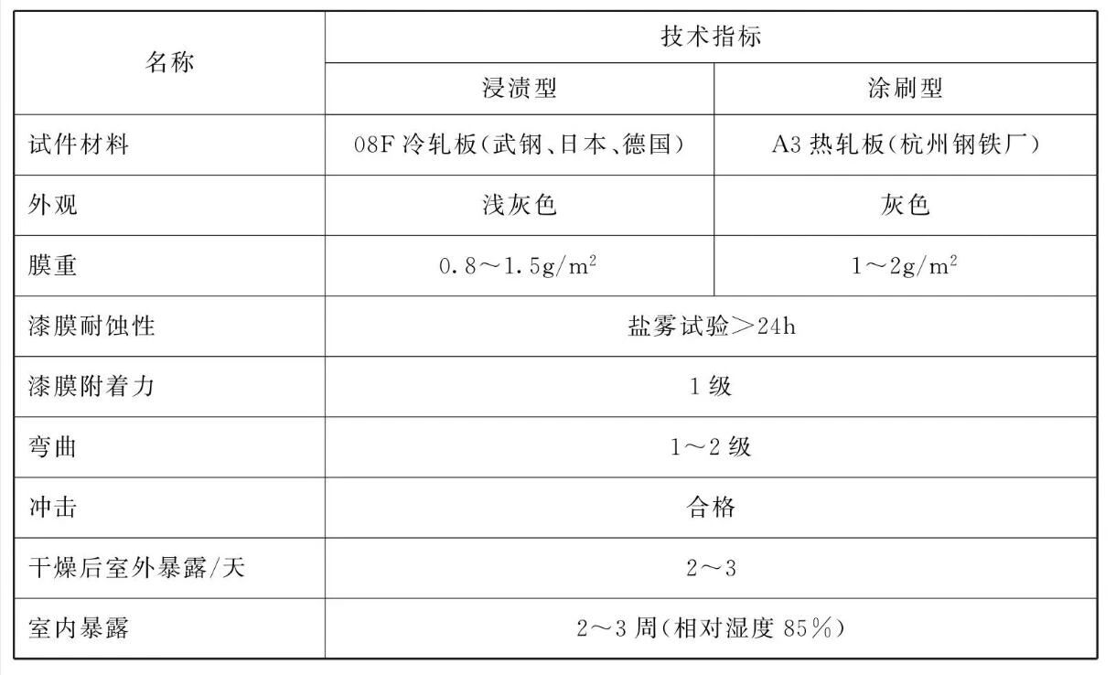 易镀,专业的表面处理交流平台 易镀,专业的表面处理交流平台 将各组分溶于水混合均匀即可。 易镀,专业的表面处理交流平台 本品各组分质量份配比范围为:磷酸10~40、磷酸二氢钠0.5~1.5、六偏磷酸钠0.2~0.5、草酸0.2~0.5、柠檬酸0.1~0.3、硫脲0.05~1、TX非离子表面活性剂0.5~1及添加剂镍氧化促进剂0.4~0.6、水加至100。 质量指标 易镀,专业的表面处理交流平台 本品主要应用于钢铁工件涂装前的表面处理。原料配比(质量份)