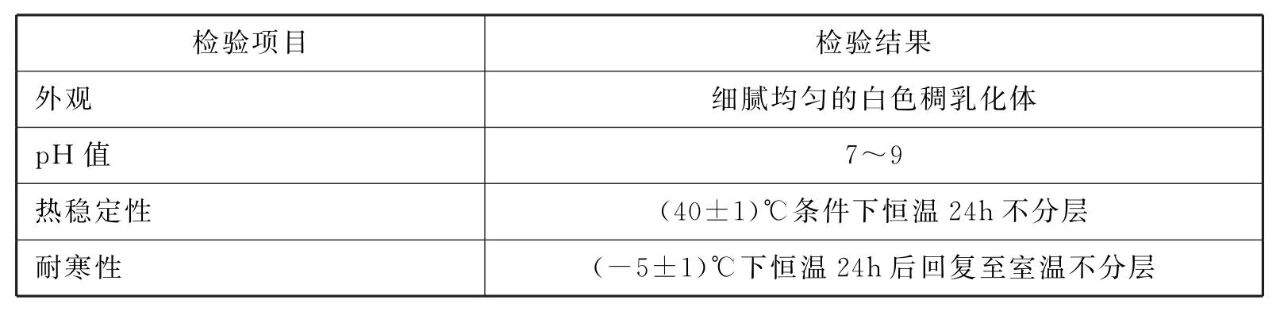 [制备方法]在500L的不锈钢乳化锅内,先加入少量强力乳化浆A2,然后将其余组分按配方给定的质量分别加入不锈钢化锅内,开启调整搅拌机(1400 ~2800r/min)打浆乳化20 ~ 30min,打浆均匀,最后加入适量香精,再搅拌均匀,放料,即为本品。