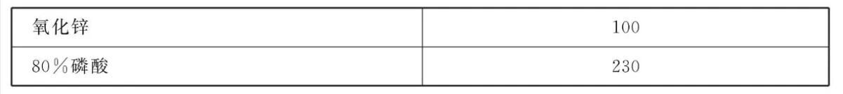 本品各组分质量份配比范围为:氧化锌100、80%磷酸230、30%硝酸280、硫酸镍(NiSO4 .6H2O)2~3、碳酸锰0.1~0.3、乙二胺四乙酸0.6~0.7、柠檬酸4~6、过硼酸钠1、碳酸钠2~3,水加至1L。