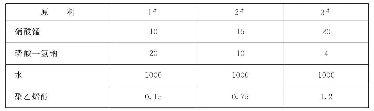 所述胶体锰盐由以下组分组成:硝酸锰10~ 20、磷酸一氢钠4~ 20、聚乙烯醇0.75~ 1.2、水1000。