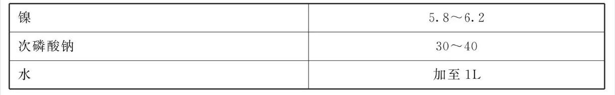 化学镀镍液包括:镍5.8~ 6.2、次磷酸钠30~40、水加至1L。钝化液包括:碳酸氢钠30~ 50、水加至1L。