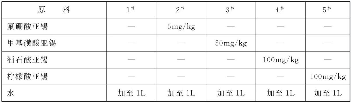 作为优选,所述的二价锡离子以硫酸亚锡的形式存在,硫酸亚锡含量为2mg/kg。