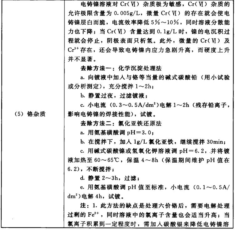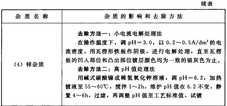 在“氨基磺酸盐镀镍液杂质”一节中,针对杂质影响和去除方法做了简要论述,因考虑到电铸镍工艺的特性和电铸镍产品的特殊性能要求,本节将重点结合产品的镀层性能,来论述氨基磺酸盐电铸镍溶液的杂质影响和去除方法。