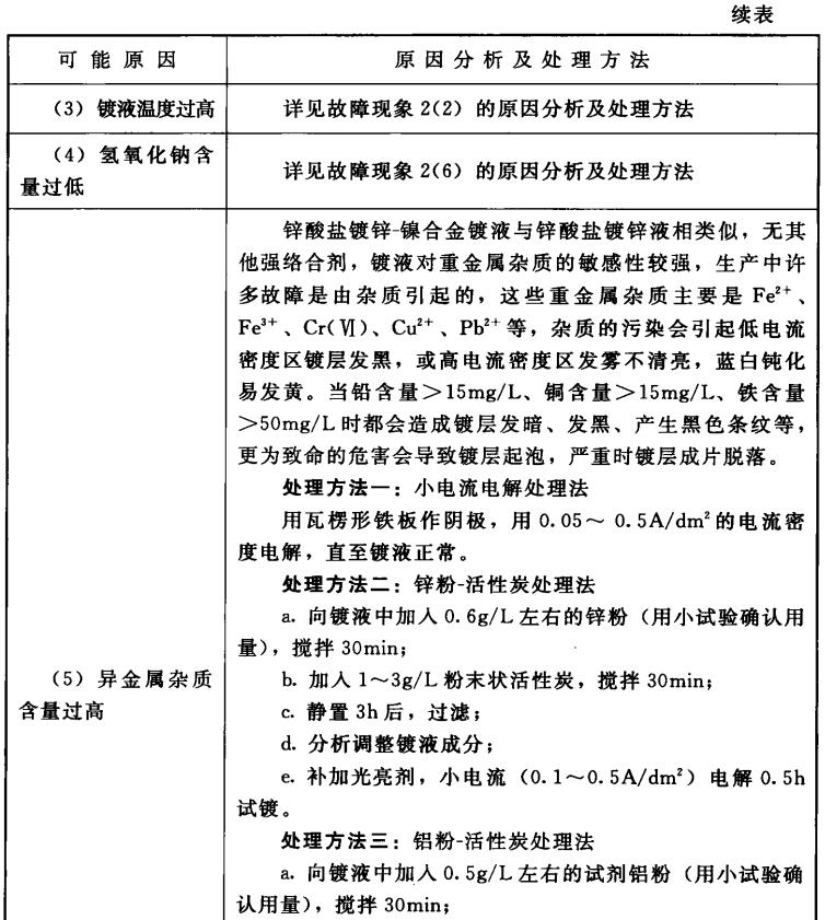 碱性锌-镍合金电镀故障如何处理?(3)?