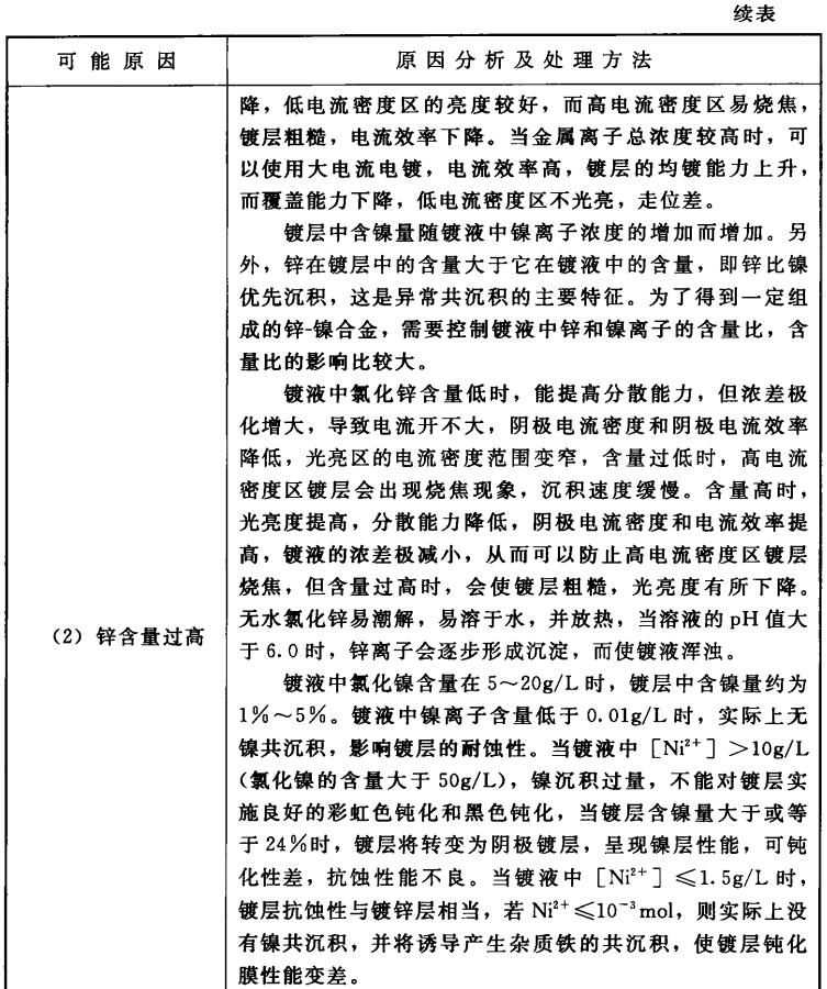 氯化物镀锌-镍合金的故障如何处理?(1)?