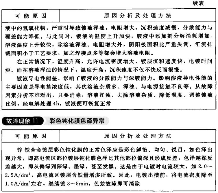 酸性氯化物镀锌-铁合金故障如何处理?(3)?